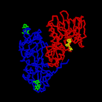 Chain, in blue, binds